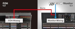 The ability to directly connect input ports to output ports without going through mixing channels provides unprecedented freedom for routing signals between the analog, Dante, and MY slot inputs and outputs. For example, a QL console could be used as an I/O device for another QL or CL series console while simultaneously functioning as a monitor console. Not only is just one QL console required for both monitor and I/O use, but analog gains can be remotely controlled from the front-of-house QL or CL console. It’s also possible to mix analog signals received at the console while directly transmitting them to a multitrack recording system via Dante, for example. The possibilities are vast.