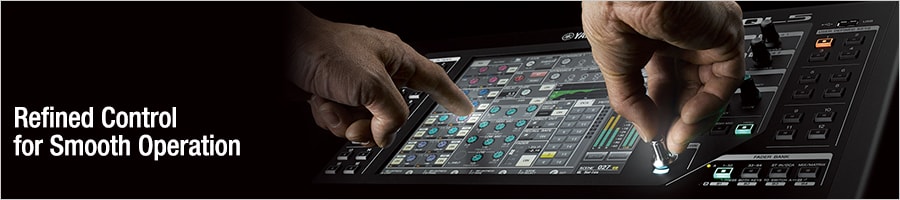 The Yamaha Selected Channel interface provides a comprehensive overview of available channel parameters with direct selection capability via its large touch-panel display. The display is the same type that was provided on the CL series consoles, offering high visibility and smooth response for stress free operation. Hands-on control via dedicated physical controllers as well as an innovative Touch and Turn knob provides speedy access to essential QL console parameters for a fast, efficient workflow.