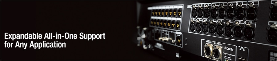 Console I/O and functions can be customized simply by inserting appropriate Yamaha or third-party expansion cards into the Mini-YGDAI expansion slots provided. QL series consoles feature dual Mini-YGDAI slots that can accept expansion cardsselected from a lineup of more than 30 types.