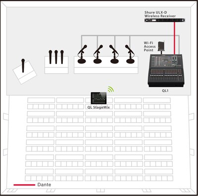 At conferences or speech events where space for equipment is limited, a compact all-in-one QL console can be a huge advantage. The built-in Dan Dugan Automixer can automatically provide an optimum mix of up to 16 speech microphones. Events can be recorded directly to, and pre-recorded BGM can be played back from a USB flash drive. The StageMix application can provide remote control capability for even greater efficiency and convenience.