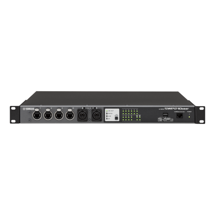 The SWP2 series L2 switch is ideal for Dante 96kHz network systems. It features 10 etherCON ports and two multi mode fiber opticalCON ports.