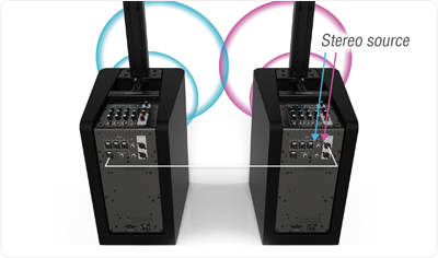 Relier deux STAGEPAS 1K permet d'étendre encore la zone de couverture et d'augmenter la puissance de sortie pour des performances à plus grande échelle. Les lectures stéréophonique et monophonique sont prises en charge et, lorsqu'elles sont réglées sur mono, les deux séries d'entrées des STAGEPAS 1K peuvent être utilisées (jusqu'à 6 entrées mono et 2 entrées stéréo).