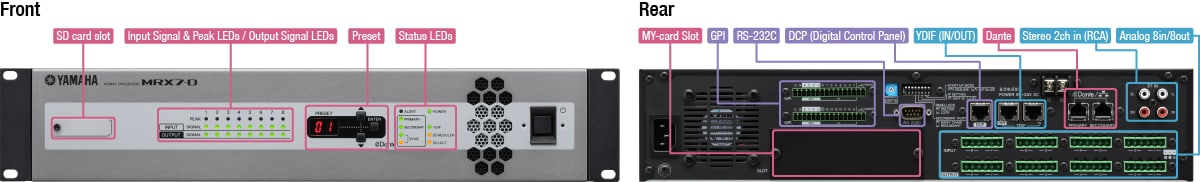 Because the MRX7-D's design architecture is freely configurable, it allows an audio engineer to create a unique solution for the customer which can incorporate many unique processing components and maximize the use of available DSP. Having built in Dante connectivity, it also allows audio systems to take advantage of the many other Dante enable products on the market including Yamaha's wide range of Digital Mixers.