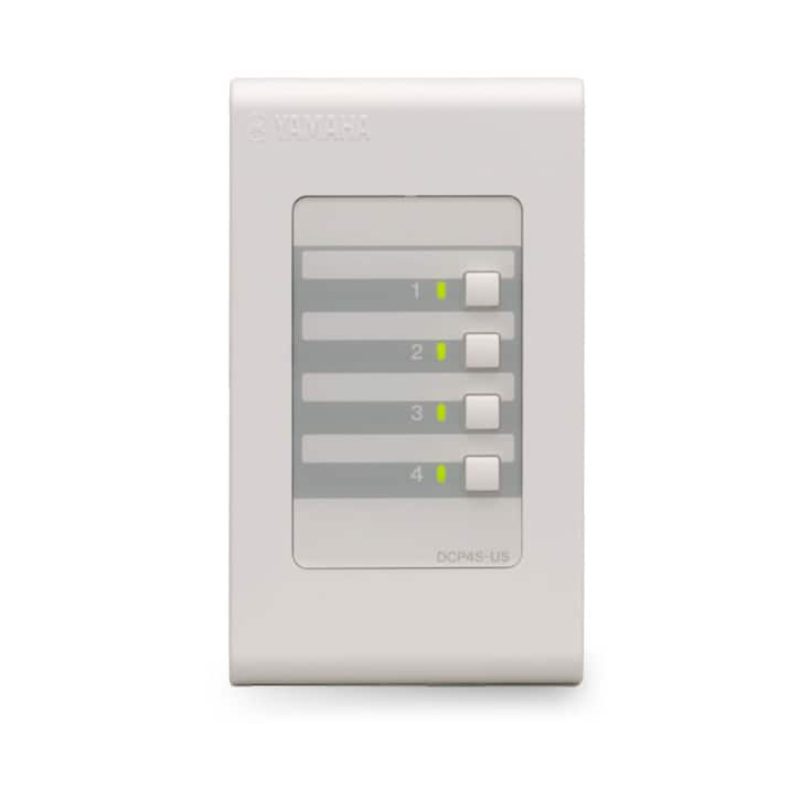 DCP controllers provide flexible external control of several functions such as preset recall, levels, and SD card playback. The series comprises of three different models that feature various configurations of switches and volume knobs.