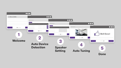 All it takes is a click in your web browser. The setup wizard automatically performs audio routing in your system. This minimizes the enormous amount of time required for adjustment, and can be easily set without knowledge or experience of acoustics.