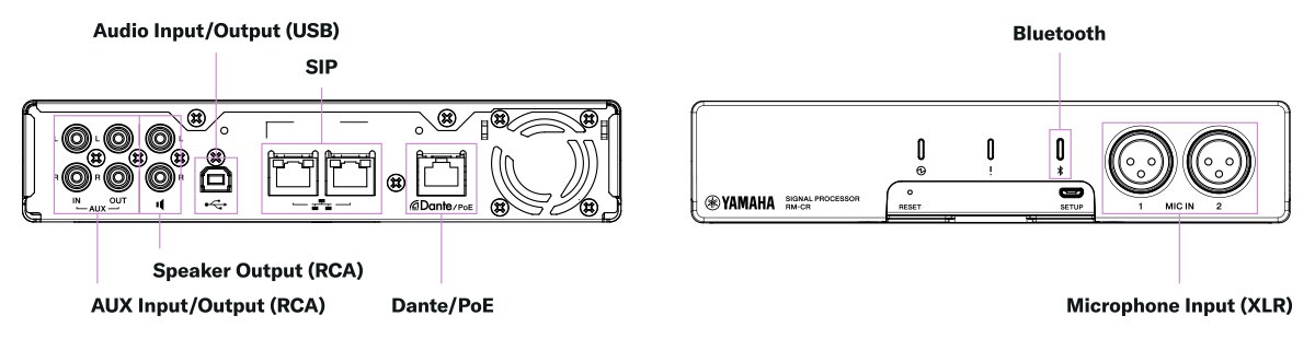 | Network Specifications | Ether1 | Dante Audio/Dante Control, Remote Control, WebUI, PoE+ | |