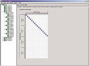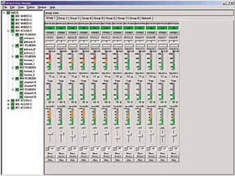 Another major feature of the NetworkAmp Manager is its ability to automatically monitor the operation of each amplifier via the ACU16-C. Each ACU16-C can handle as many as 32 amplifiers, making it easy to keep track of and control specific amplifier groups. A channel detail window provides graphical monitoring and controls for each channel, including power-on/standby, attenuation in 62 steps, phase (normal/reverse), mute (on/off), input and output metering, heat sink temperature, and load impedance (current, max. hold, min. hold).
