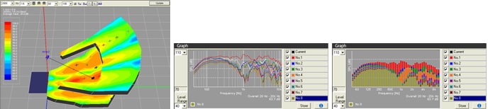 With sophisticated graphic user interface and user-friendly settings wizard, simulation can be performed precisely and easily. You can easily set and change the venue shape, conditions, and other aspects with the wizard, and make graphical visualizations of sound pressure level distribution at receiving points, frequency characteristics graphs, and contour figures. Plus it provides auralization, which lets you hear the sound with your ears using any sound source for even better monitoring.