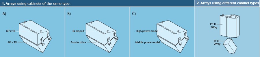 Les enceintes IF2112 et IF2115 sont trapézoïdales (à 30°) pour pouvoir être couplées (des plaques de couplage par deux ou par trois enceintes sont disponibles). Les modèles IF2112AS, IF2115AS, IF2108 et IF2208 ont une forme ""multi-angles"", ce qui permet de les utiliser aussi en façade qu'en retour de scène. Le modèle IF2205, en revanche est en forme de parallelépipède. Cette enceinte peut se fixer de façon très discrète, sous des balcons de théâtre pour assurer des rappels sonores ou être encastré dans des marches d'escaliers.