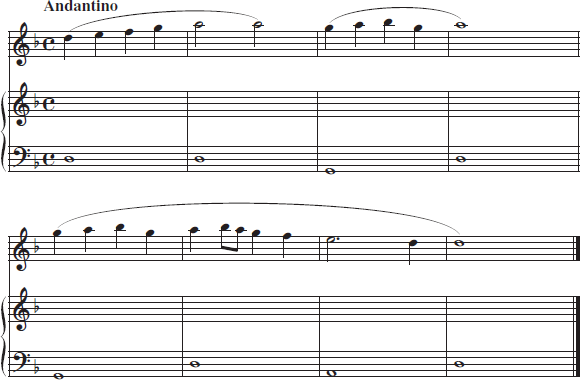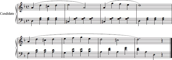 1. Pendant que l'examinateur joue la mélodie, les candidats écoutent en regardant la partition. Les notes de basse sont données.