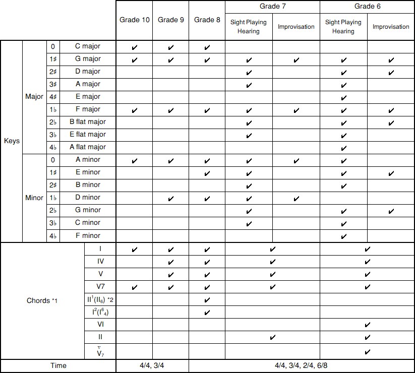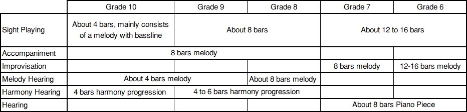 - Il est recommandé aux candidats de s'entraîner à jouer divers motifs d'accompagnement qui s'adaptent à l'humeur, au tempo, etc. des mélodies de différents styles musicaux.
