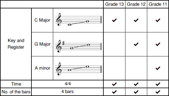 - Pour le niveau 12, les candidats peuvent être autorisés à le chanter à vue ou à nommer les notes.