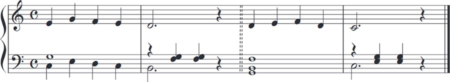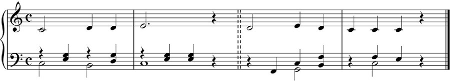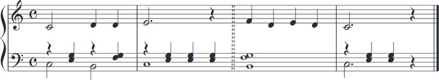 3. L'examinateur joue la première partie, puis le candidat joue/chante (niveau 13), joue (niveaux 12 et 11) la mélodie à l'oreille. L'examinateur peut jouer la mélodie entre parenthèses si le candidat la chante pour le niveau 13.