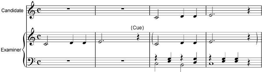 2. Les examinateurs informent le candidat de la tonalité, et jouent toute la mélodie avec l'accompagnement.