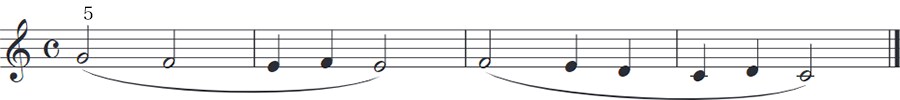1. L'examinateur montre la mélodie d'environ 2 à 4 mesures d'un morceau du répertoire joué lors de l'examen de qualité et demande au candidat de la jouer.