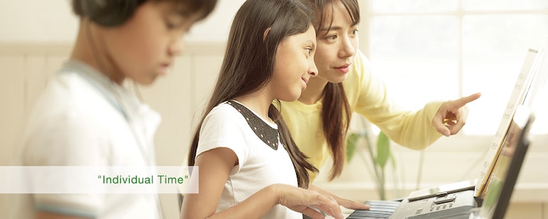 Chaque élève maîtrise de manière fiable les techniques de performance grâce à des leçons adaptées à son propre rythme pendant des leçons individuelles avec un enseignant. L'enseignant apporte un soutien solide à chaque élève, qu'il s'agisse de ceux qui veulent progresser régulièrement en jouant diverses pièces, et des élèves qui sont occupés et qui ne peuvent pas consacrer de temps pour s'entraîner à la maison et qui ont donc l'intention d'avancer à un rythme plus tranquille. Vous pouvez commencer à tout moment sans vous soucier de l'âge ou des heures précises.