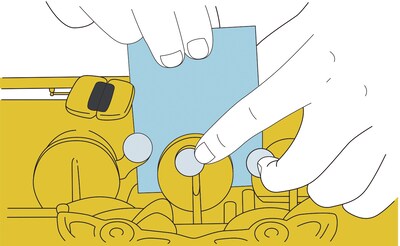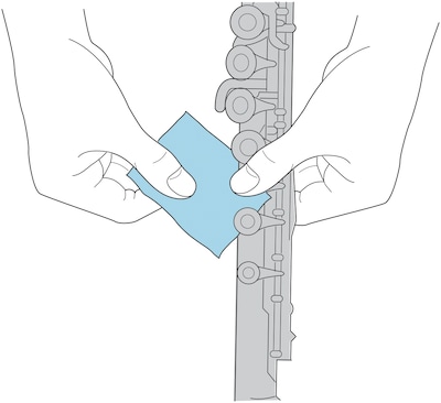 Placez le papier de nettoyage entre le tampon et le trou de tonalité, puis fermez doucement la touche plusieurs fois.