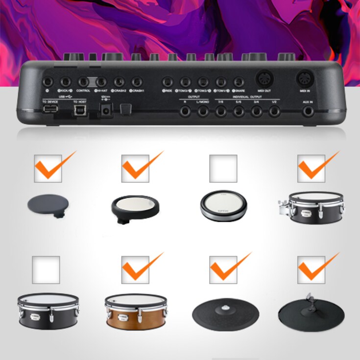 Examinez de plus près la compatibilité des différents pads de batterie Yamaha avec les entrées de votre module de batterie.