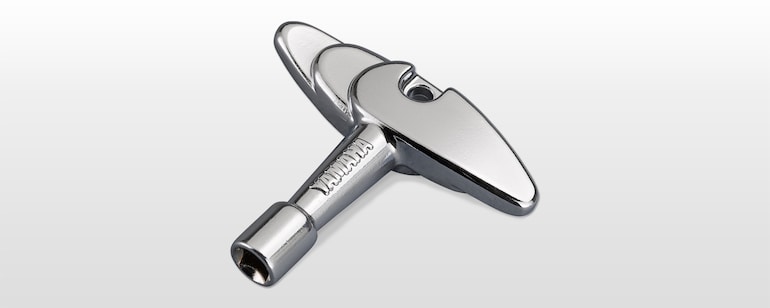 - Une clé d'accord standard qui est plus épaisse aux deux extrémités du manche afin qu'elle tienne facilement dans la main pour un accord plus doux.