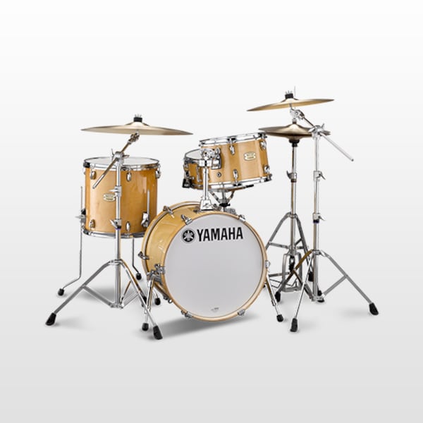 Un kit Stage Custom compact utilisant des fûts en 100% bouleau qui sont devenus synonymes des batteries Yamaha. Une grosse caisse peu profonde de 20 x 8 pouces soutient la base de l'orchestre et maintient l'ensemble des installations compacte. Le floor tom est équipé d'un timbre lui permettant d'être joué comme une caisse claire pour de nombreux styles de musique.