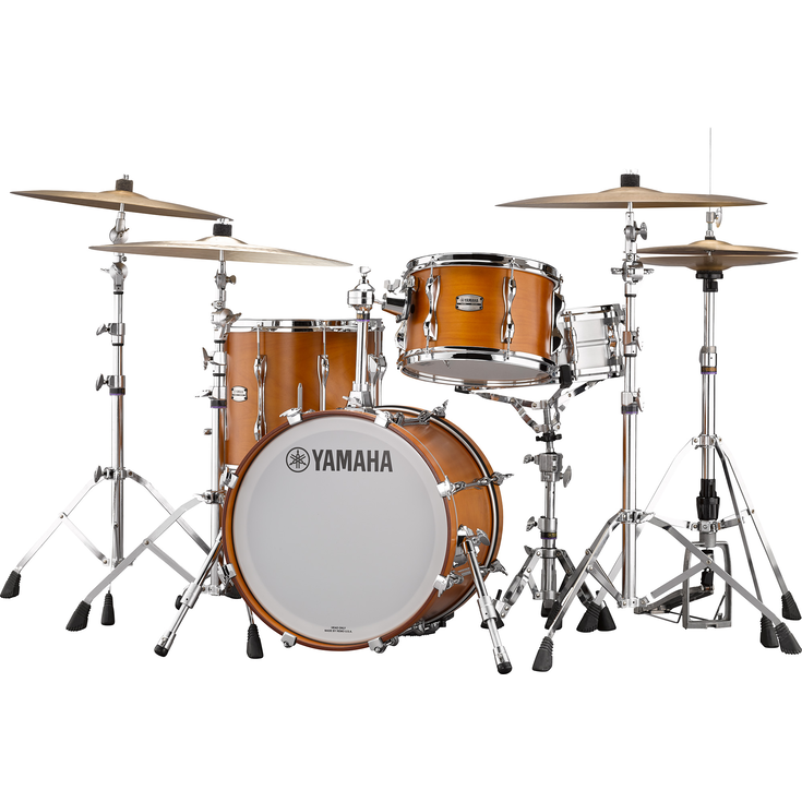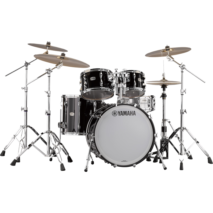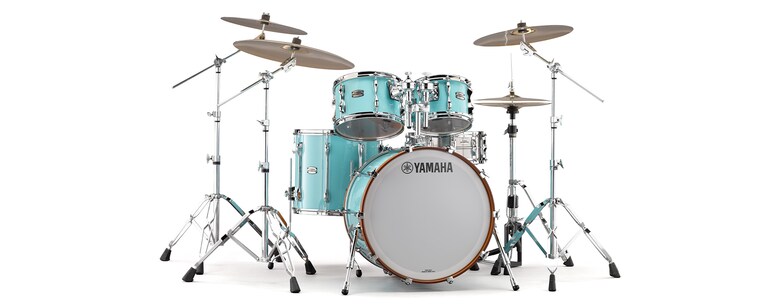 Les Toms et les Toms de plancher sont équipés de peaux enduites Remo Ambassador, connues pour leur son chaud et clair et leur qualité sonore ouverte et résonnante. Les grosses caisses sont équipées de peaux PS3 Smooth White avec le logo Yamaha et d'une peau enduite de batteur Remo PS3 (le côté batteur de la grosse caisse de 18 po est équipé d'une peau enduite Remo Ambassador).