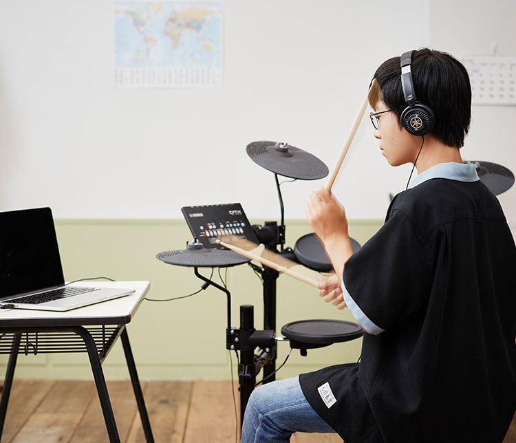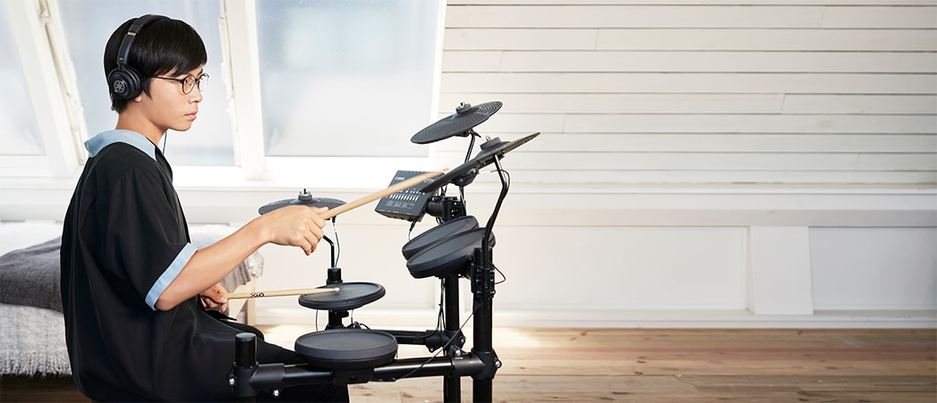 La réponse ferme des peaux est parfaite pour la pratique. Elle vous permet de sentir clairement le rythme que vous jouez, tandis que les coussinets de caisse claire et de tom intègrent le système flottant unique de Yamaha pour offrir une réponse silencieuse mais agréable. Les ingénieurs professionnels n’étaient pas les seuls impliqués dans l’élaboration des sons du DTX402 - les performances de plusieurs batteurs ont été utilisées pour les affiner et les rendre aussi naturellement expressifs que possible, en leur donnant une réponse et une expression naturelles qui permettent une transition en douceur vers les batteries acoustiques.