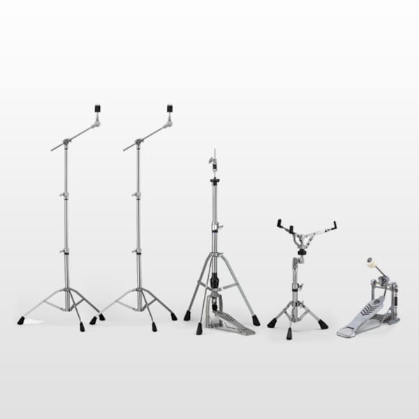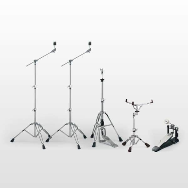 Ensembles de matérielTous les pieds sont d'une solidité et d'une stabilité exceptionnelles malgré leur légèreté. Une pédale de grosse caisse est proposée en version simple chaîne.