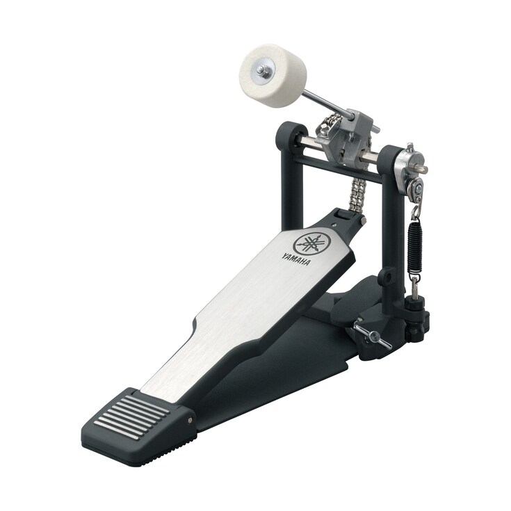 Pédale grosse caisse simple - transmission par chaîne - semalle plus longue.
