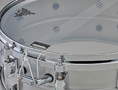 Les caisses claires de 14x5,5 (taille de celles qu’utilise Steve Gadd) sont équipées d’un timbre de 20 brins, mais elle est aussi livrée avec un timbre supplémentaire de 10 brins Signature Steve Gadd (voir photo). Ce timbre que préfère jouer Steve est à l’origine un 14 brins sur lequel 4 brins ont été retirés. Il permet d’avoir un son de caisse claire très précis et le batteur contrôle mieux la vibration générée par celui-ci.