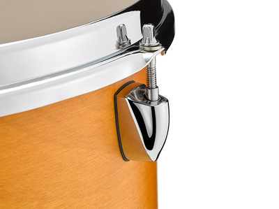 Le nouvel anneau inversé Dyna Hoop de 2,3 mm contrôle les harmoniques naturelles inhérentes aux tambours entièrement recouverts d’érable, et ajuste le ton fondamental du fût.