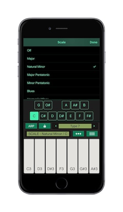 You can play Arpeggiator and Chord pads in addition to keyboard with various scales
