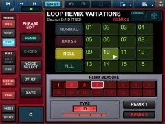 - Support pour inversions et syncopations dans la section édition (incluant les réglages pour 8e note, 16e note et triplets) ; deux fonctions LoopRemix peuvent maintenant être assemblées en une phrase musicale ; support pour réorganisation, insertion et suppression de sections.