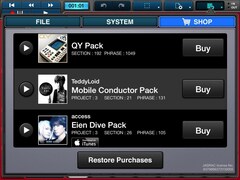 Quatre packs de sonorités et de phrases supplémentaires peuvent être achetés directement à l'aide de l'application. (Dance Pop, Electronique, Hip Hop, R & B)