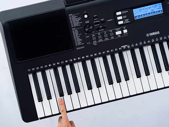Utilisez les fonctions pédagogiques pour apprendre facilement les morceaux intégrés. Cette méthode vous aide à vous exercer avec les morceaux intégrés et à améliorer vos performances de jeu. Les fonctions d'apprentissage sont conçues pour étudier de manière optimale et agréable. Il vous suffit simplement de sélectionner celle qui vous convient afin d’accroître votre niveau de jeu au clavier.