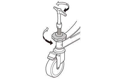 Le YCH7018 dispose de roulettes équipées d'un compensateur de niveau. Ce système permet de mettre l’instrument de niveau afin que les tubes soient parfaitement centrés dans les trous de l'étouffoir et puissent sonner librement. Une fonction anti-pivotement a été ajoutée aux freins des roulettes.