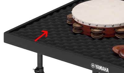 La surface supérieure de la table est recouverte d'un tampon en uréthane ondulé qui minimise le bruit lorsque des mailloches, des instruments à main et des petites percussions ou d'autres objets sont placés sur la table.