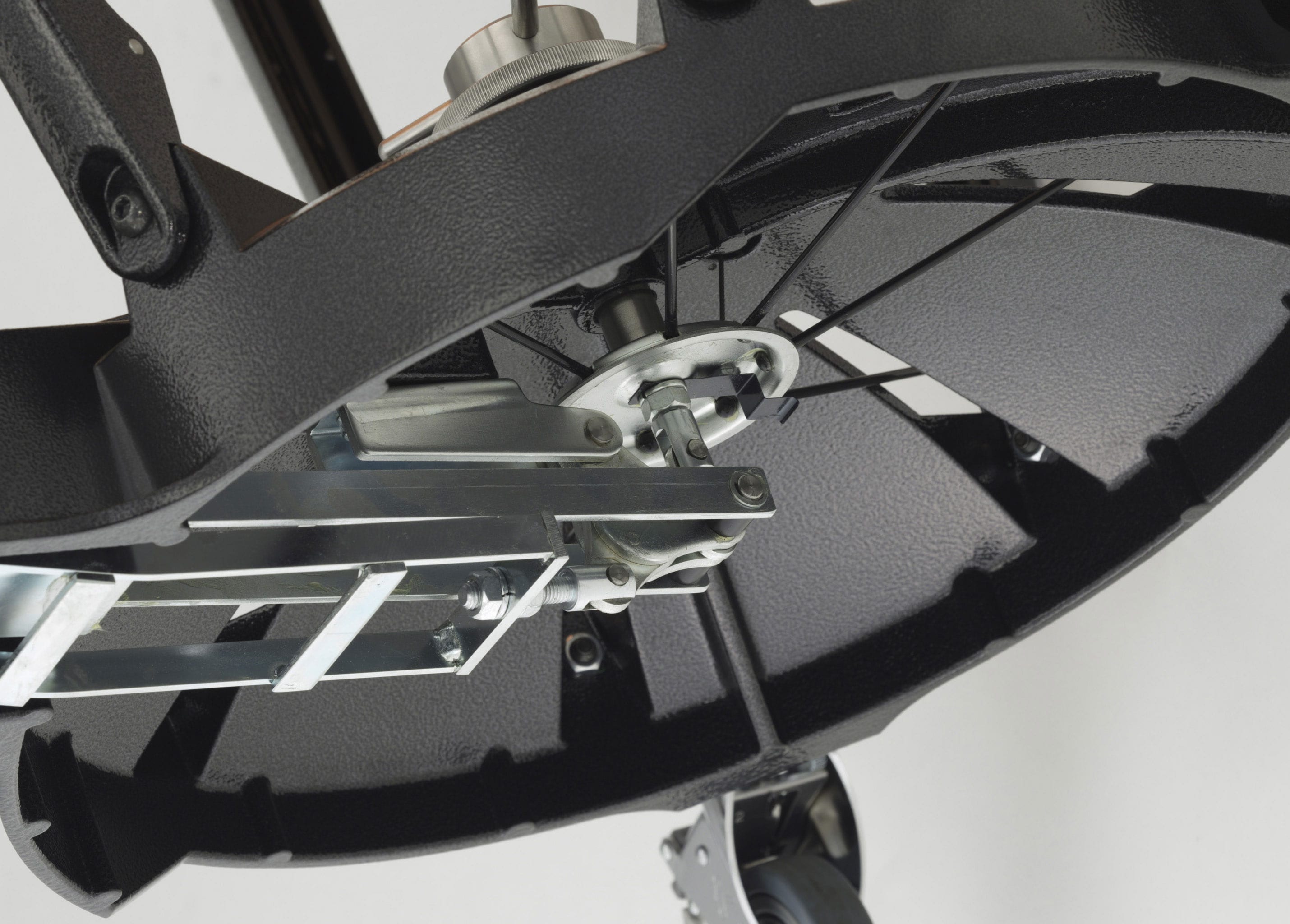 The main casters include a one-touch lock mechanism that contributes to fast, sure setup. In addition to the main caster lock mechanism an auxiliary brake has been added to the pedal caster. The player can engage the auxiliary brake to securely lock the caster and prevent movement of the instrument.