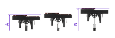 Distance entre l'endroit où le cadre touche le sol et le haut des barres de tonalité accidentelle Hauteur minimale : 69 cm (A), hauteur maximale : 88 cm (B)