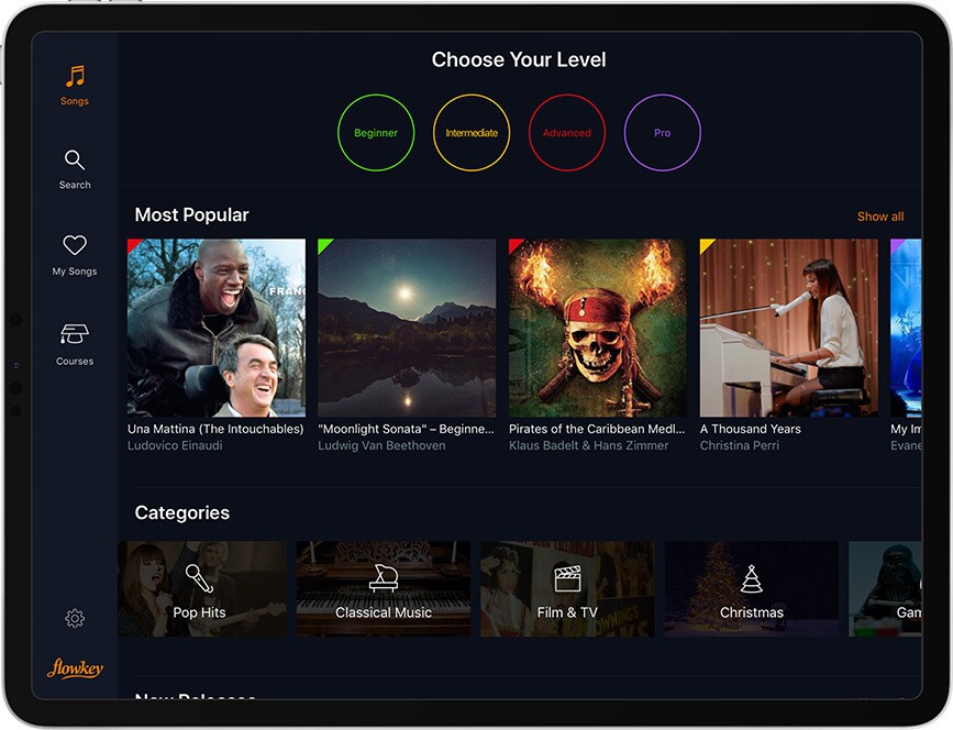 flowkey est l'application pour apprendre le piano et les chansons que vous aimez. En utilisant flowkey avec votre piano ou clavier numérique Yamaha, vous serez étonné de la rapidité avec laquelle vous pourrez apprendre à jouer votre musique préférée.