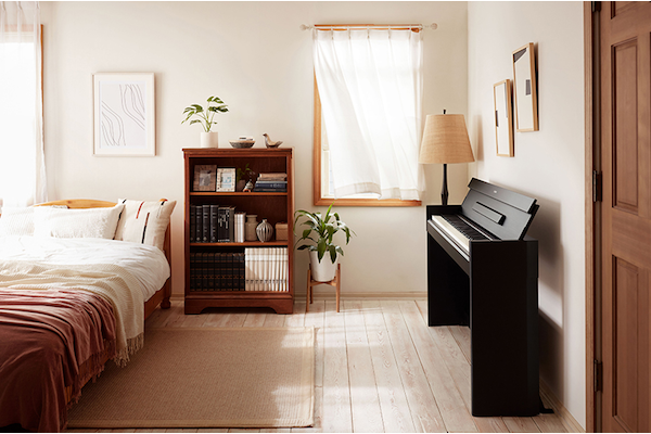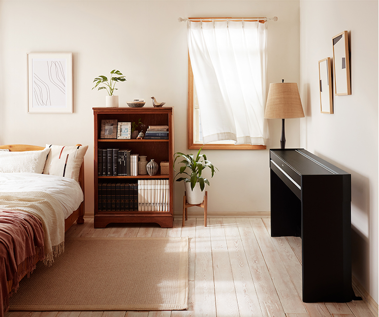 L'armoire à piano a une profondeur réduite qui vous permet de l'installer dans n'importe quelle pièce. Son design chic et élégant rehausse sans effort votre espace de vie. De plus, la fermeture du couvercle du clavier donne à l'instrument un aspect plat et discret.