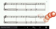 Suivez simplement la balle qui rebondit sur la partition affichée à l'écran, afin de ne jamais être perdu. Les pages défilent automatiquement ou peuvent être tournée par un simple glissement du doigt sur la partition. Si vous rencontrez des difficultés dans le déchiffrage des partitions, vous pouvez suivre le guide lumineux qui vous indique la note à jouer. Celui-ci vous attend tant que vous n'avez pas joué la bonne note afin que vous appreniez à votre rythme.
