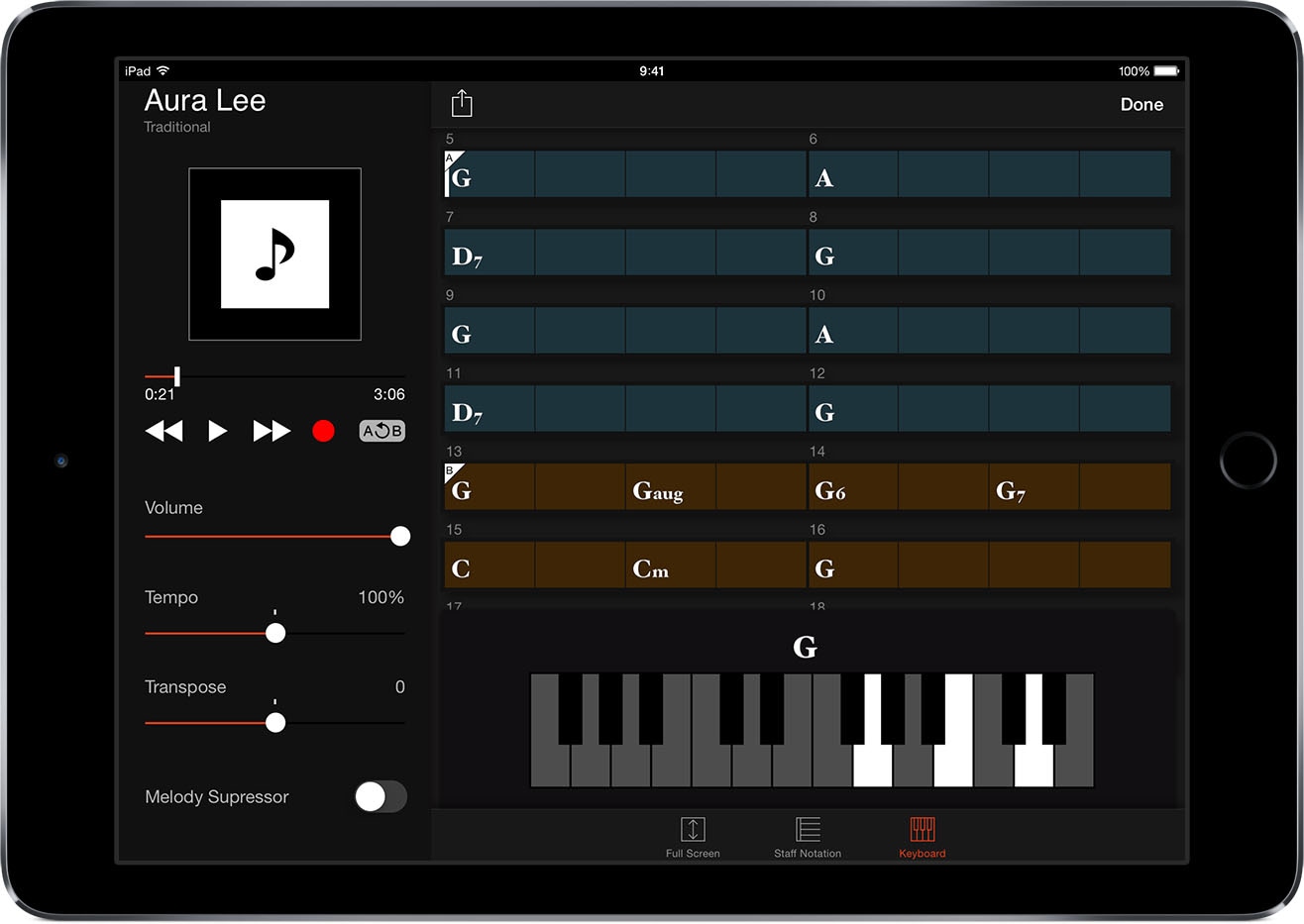 Trouvez les accords de vos morceaux à l'aide de l'iPad.