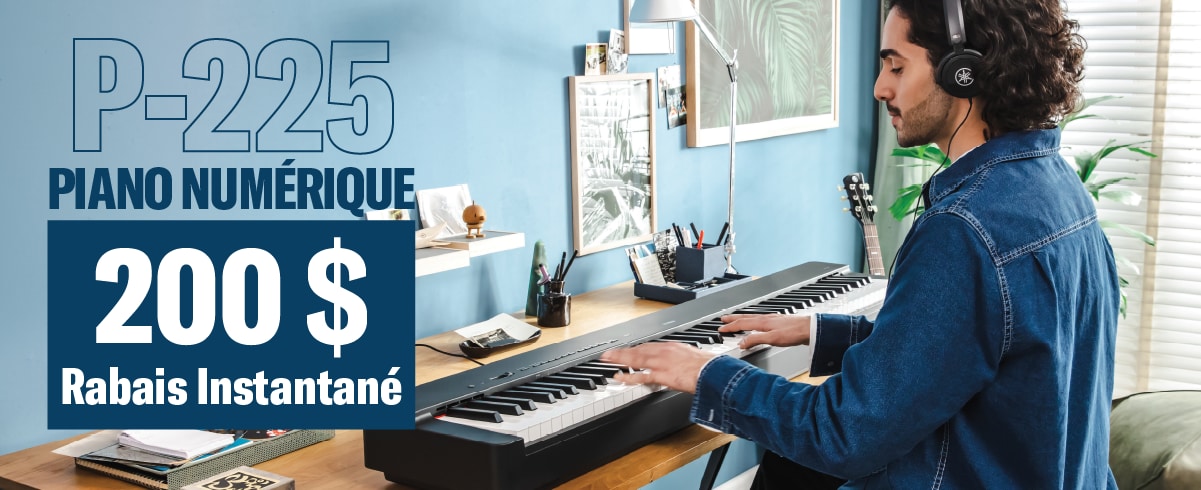 Son puissant. Design épuré. Obtenez 200 $ DE RABAIS sur le Yamaha P 225 pour un temps limité.