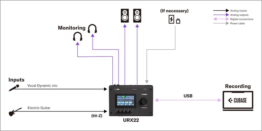 Le son est envoyé via USB à un ordinateur, ce qui permet un enregistrement de haute qualité dans Cubase avec une configuration minimale.